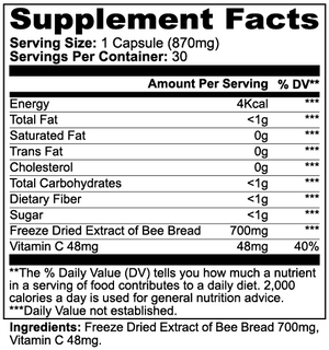 Ingredients: Freeze Dried Extract of Bee Bread, Vitamin C.