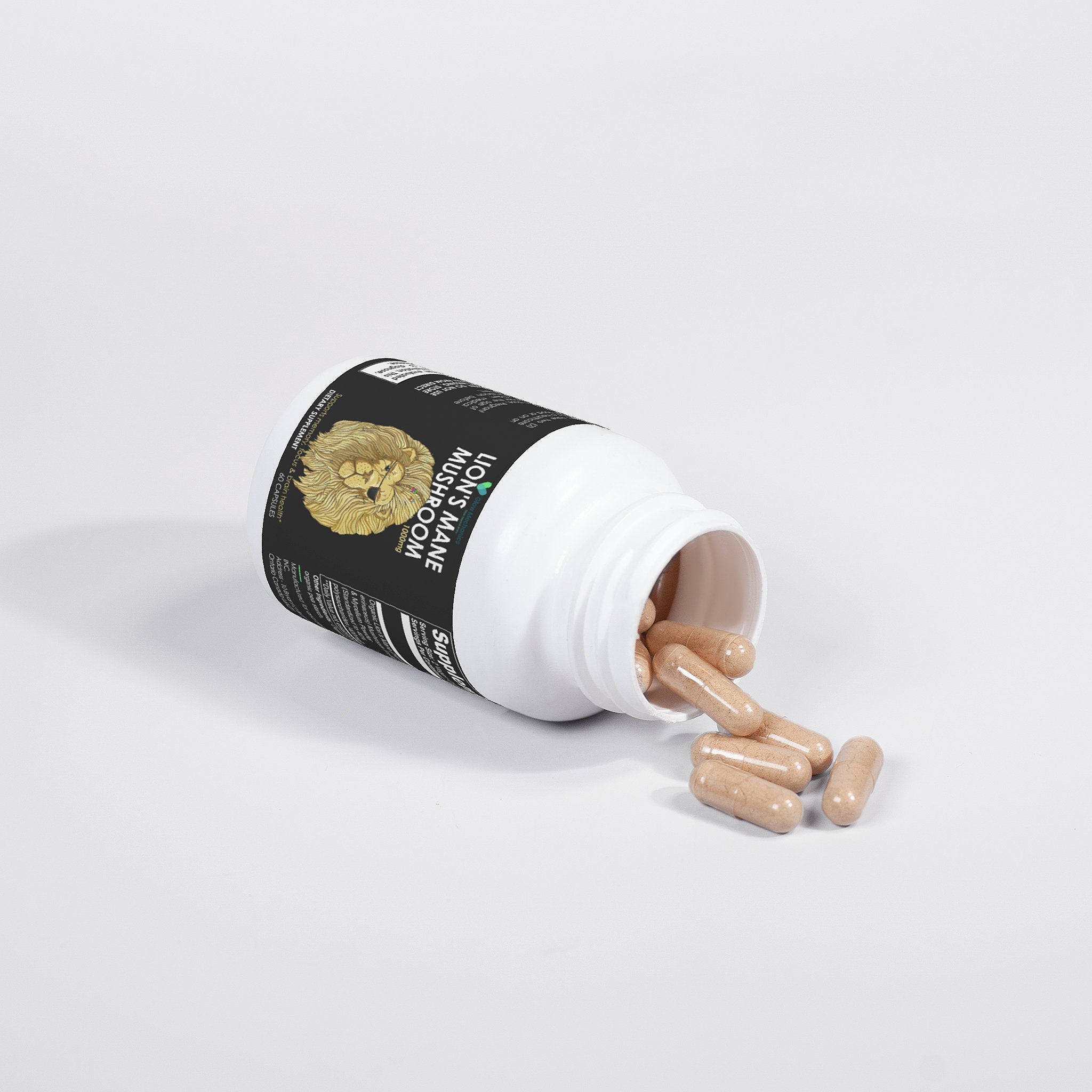 Ingredients: Organic Lion’s Mane (Hericum erinaceus) Mushroom Fruiting Body & Mycelium Powder (Standardized to 40% polysaccharides [400mg]), Organic capsule (pullulan, water), organic pea starch.